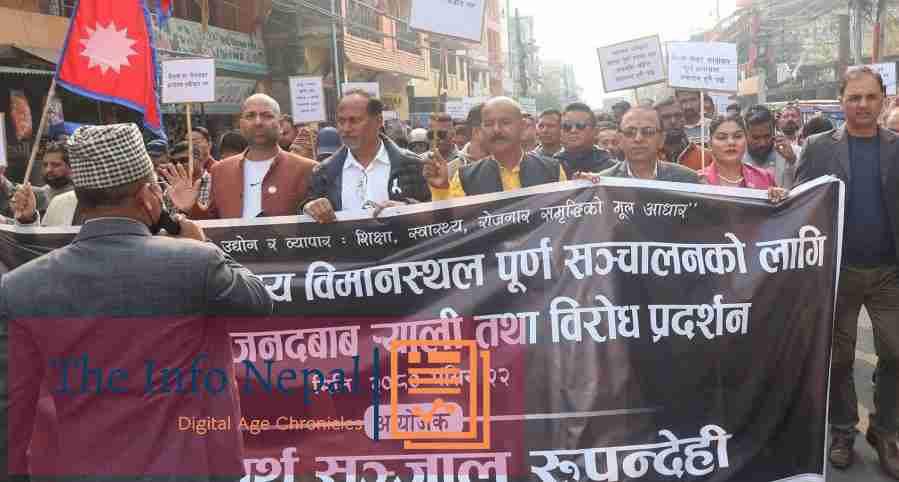 तिलोत्तमा, २३ मंसिर २०८०, भैरहवा स्थित अन्तरराष्ट्रिय विमानस्थलमा नियमित उडान नहुँदा भएको विरोधमा सरकारका खिलाफ गरिएको प...